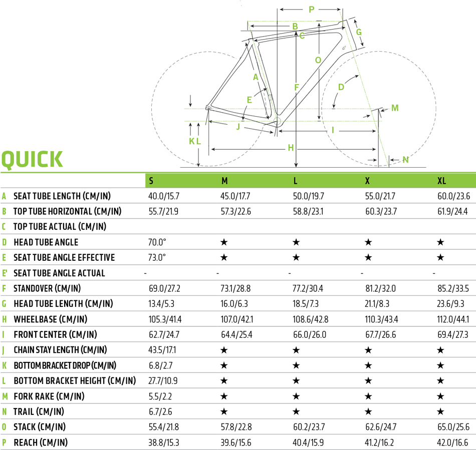 - Frame: Quick,SmartForm C3 Alloy, SAVE, 1-1/8" headtube