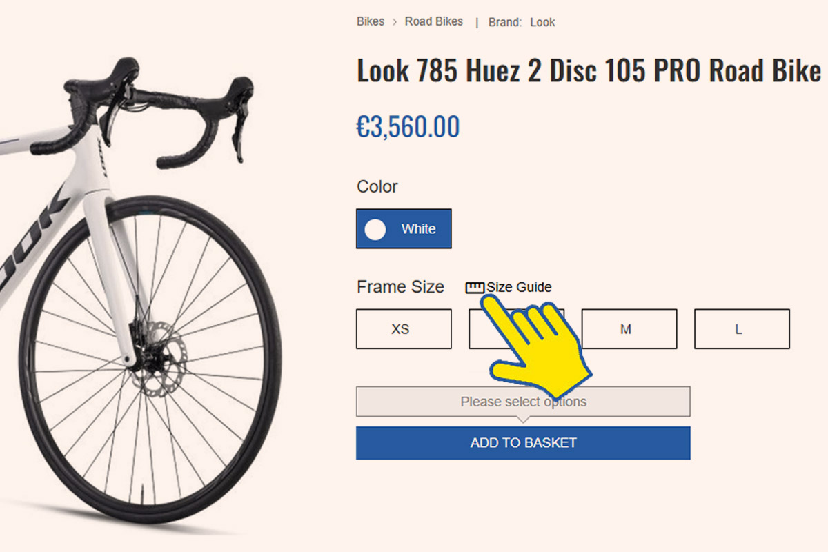 You’ll be guided through a few quick questions — including your height and preferred riding style — and the Smartfit tool will recommend the correct frame size for the specific bike model you’re viewing.