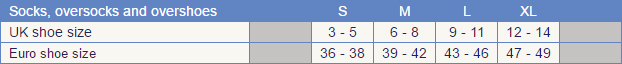 To ensure you purchase the perfect fit sock or overshoe, please ensure you pick the same size in relation to your shoe. For example if you are a size 7 shoe (UK) you will require a medium sock or overshoe.