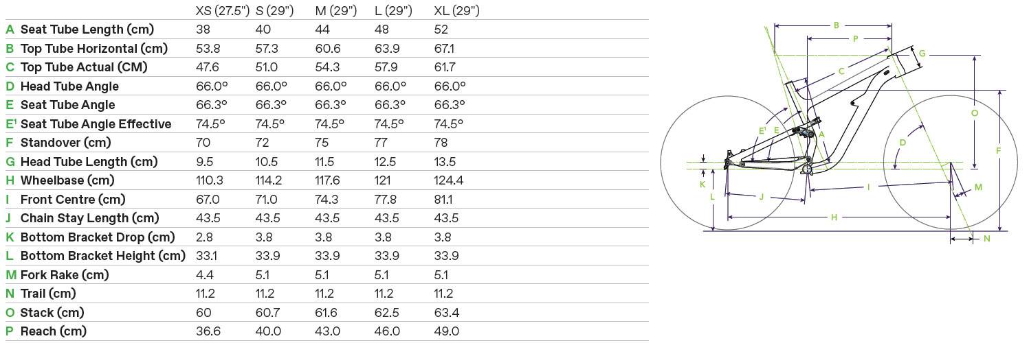 The head angle is slack, the stays are short and the seat angle is steep. It’s that long, low modern geometry that helps you wring a little more flow out of every kind of trail. - One Size Doesn’t Fit All: