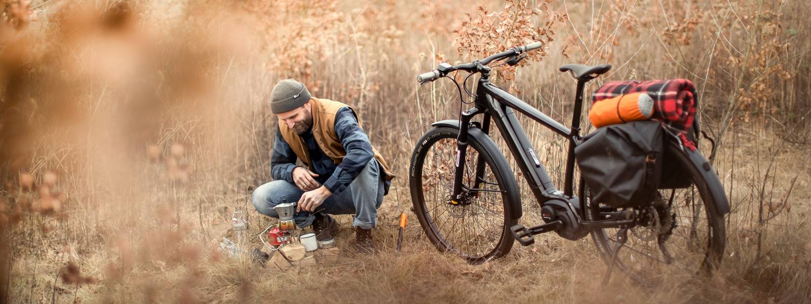 This on-road/off-road e-bike is a fully loaded trekking machine. Get out of the rat-race and into the wilderness.