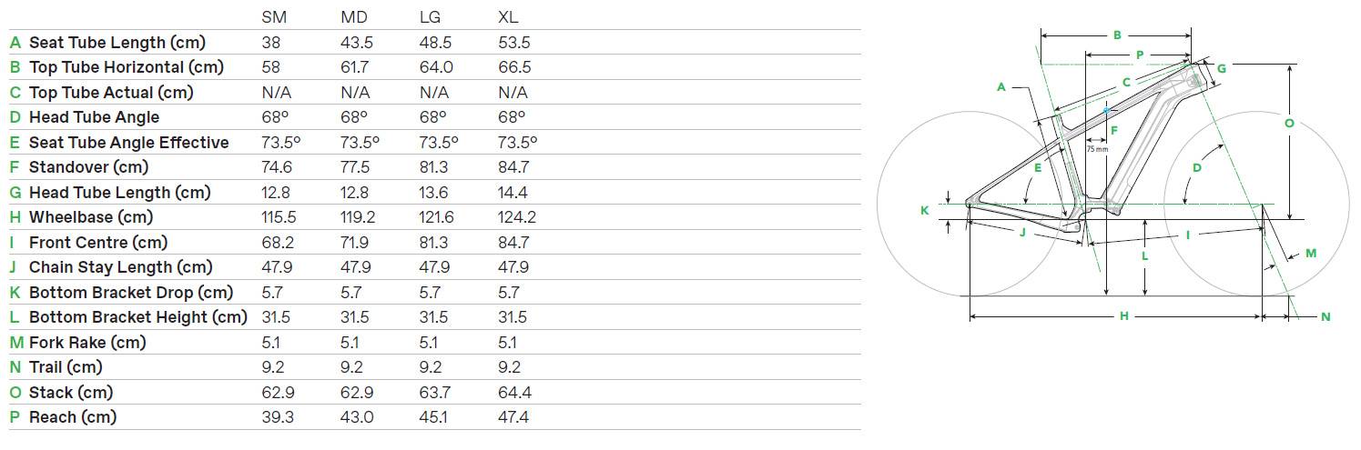 - Handlebar: Cannondale C3 Riser, 6061 Alloy, 15mm rise, 8° sweep, 4° rise, 740mm