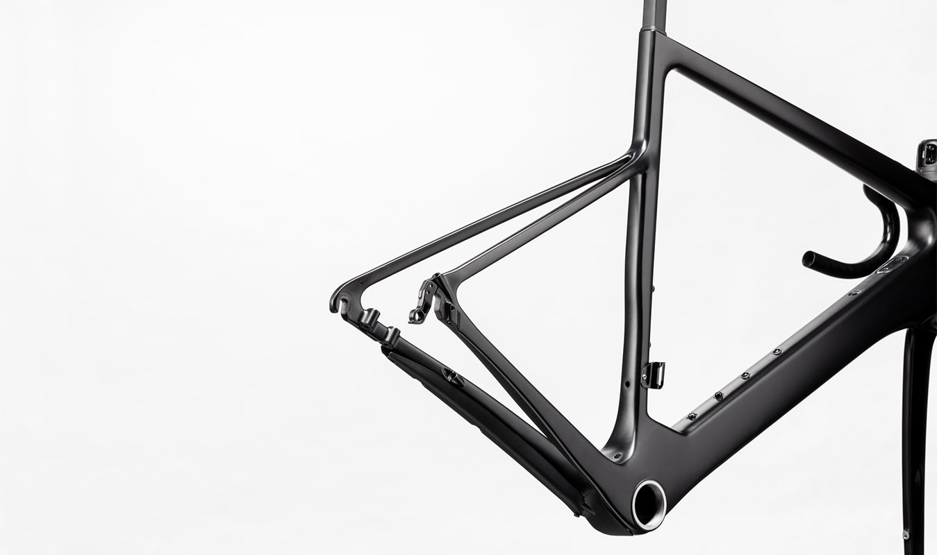 The frame features highly truncated airfoil tube shapes that offer the same weight, and equal or better stiffness, than round tubes, but reduce drag by up to 30%.
