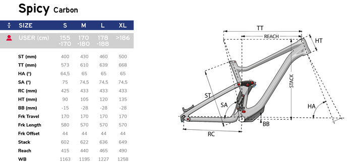 - Frame: Spicy Full carbon Ultimate 170mm travel (29'), pressfit, boost, metric, thru axle