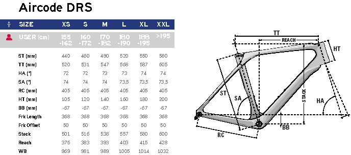 More aggressive geometry for improved performanceWe can improve the bike but what good is an aerodynamic bike without better posture for the cyclist? Improving the cyclist’s aerodynamics was also crucial for us to ensure greater speed. With a straighter and more constant saddle angle from XS to M (74°) and L to XXL (73.5°) and a slightly longer reach, the cyclist’s position is slightly lower, reducing air resistance. More projected at the front, more compact and lower, the position is simply more aerodynamic! At high speed, you will be blown away by the stability of the bike’s front thanks to the longer front wheelbase and reach and the explosive responsiveness of the rear frame with its short 405 mm bases. Taking one turn and bend after another at high speed is more thrilling than ever with the Aircode DRS precision! We have managed the unthinkable by combining stability, precision and explosiveness. So release the brakes and get your best time in all your categories!