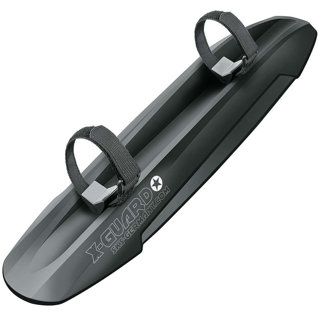 The X-GUARD is a universal mudguard for any wheel size. It is attached using two straps on the lower bar, so fat bikes and bicycles with oversized tyres in particular can rest assured of absolute all-around mud protection. It also protects E-MTB batteries from dirt, splashes and flying rocks. The straps are extra long and can be shortened as needed, making X-GUARD suitable for any frame shape and all commonly marketed battery models.