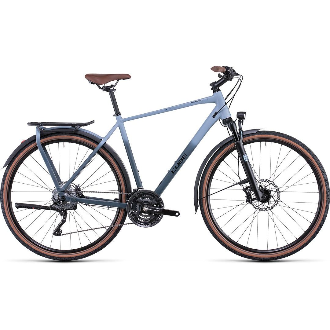 Cycling is a great way to reduce your carbon footprint. With the brand-new Kathmandu SL, we've gone the extra mile to use recycled materials wherever possible. So it features a front light that's made from recycled materials, and mudguards manufactured from recycled PET. It's a small thing, but it's our way of doing what we can. Shimano's XT components are easy to use and the last word in reliable performance. The comfortable, easy-to-adjust Suntour NCX E RL air suspension fork makes long days in the saddle a pleasure. And, with the reworked Integrated Carrier 3.0, mudguards, lighting set and kickstand, we like to think we've set a new standard for low-impact, low-carbon travel.