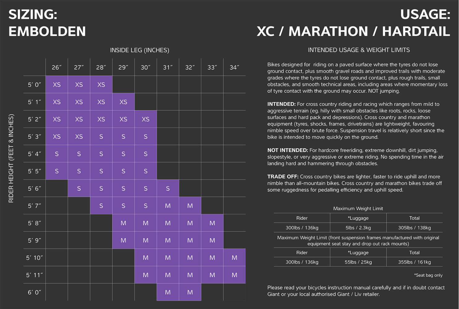BIKE SIZE CHART