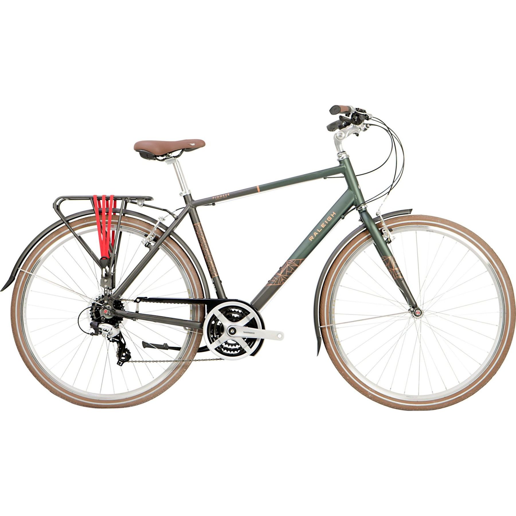 - With 24-speed Shimano gears, this fully equipped bike gives you everything you need to tackle even the biggest hills – no sweating necessary.