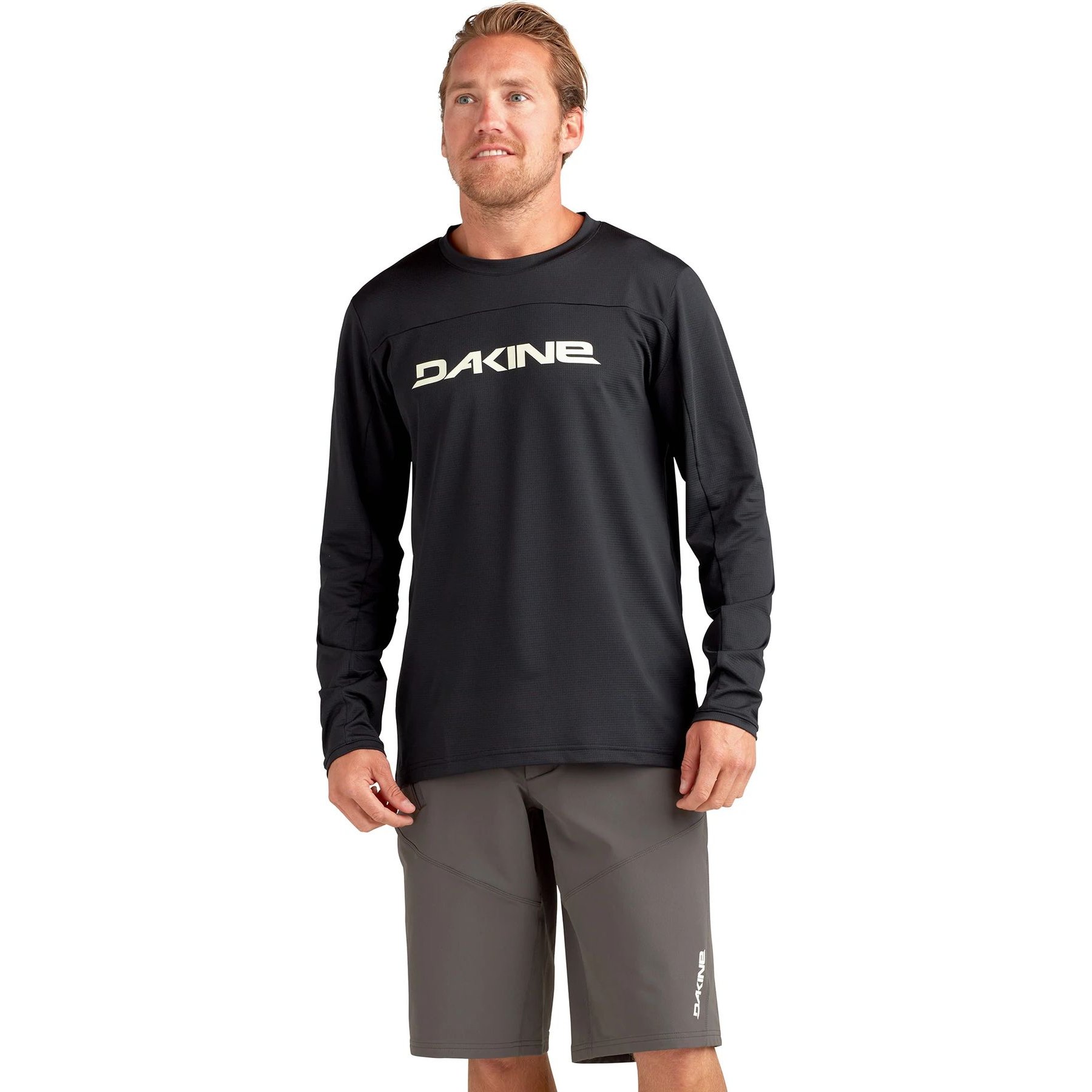 Any ride. Any day. Built to keep you dry, this men's long sleeve mountain bike jersey moves seamlessly from trailhead to town. Don't let the casual style fool you. It sheds sweat for quick evaporation and features four-way stretch for a natural range of motion on and off the bike. A two-inch drop hem keeps biker’s crack at bay and integrated odor control manages the funk factor.