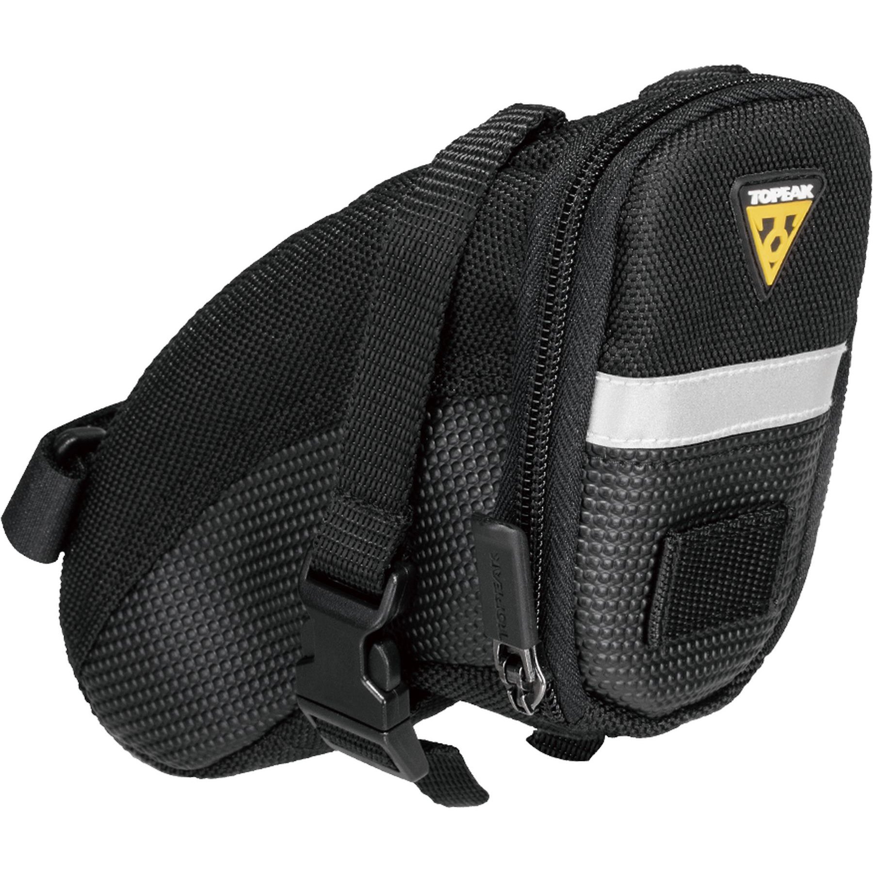 Aero shaped wedge pack with easy-to-use quick release or strap mounting system.