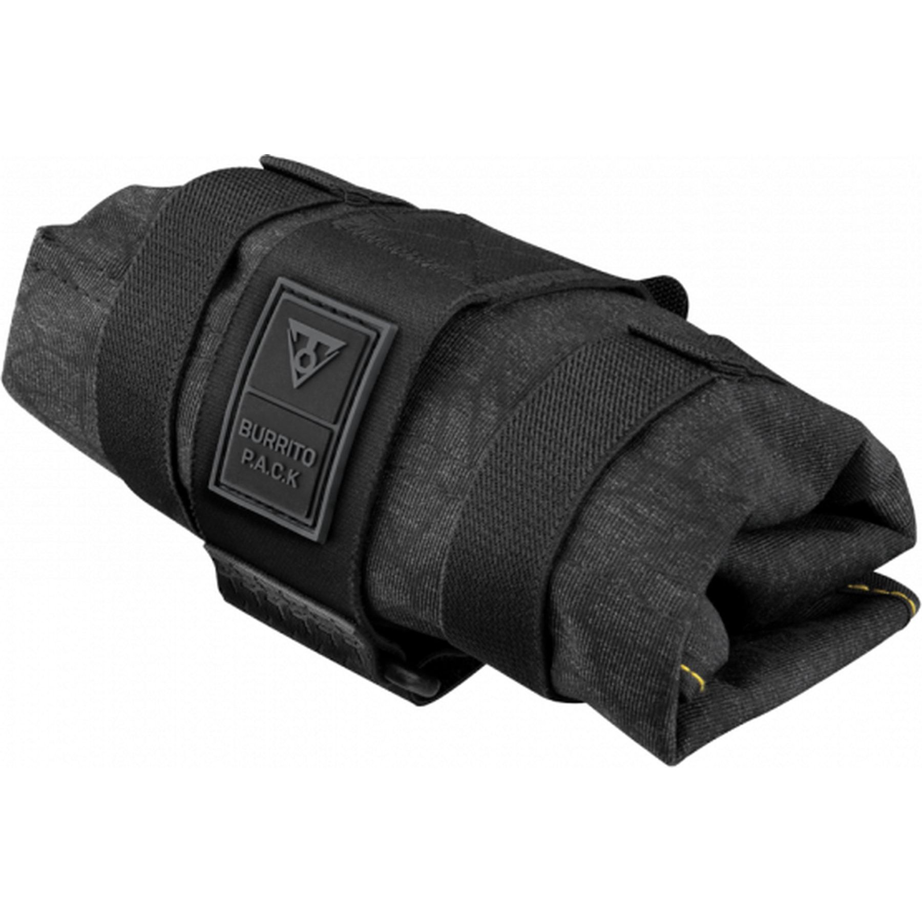A compact roll-up with three compartments and internal organizers to keep gear and small items neatly in place. The durable water repellent and stain resistant coating keeps contents dry and cleans up easily. Secure strap provides tool-free mounting to frame tube, seat post or to saddle rails.