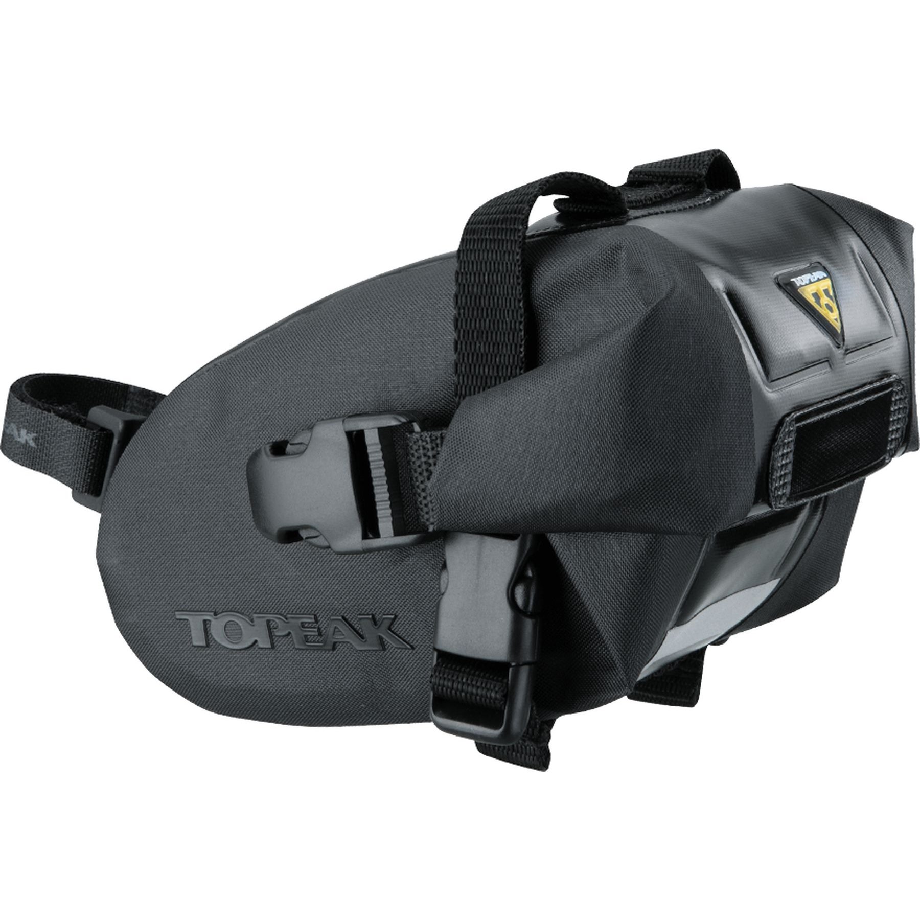 Aerodynamic bag with roll closure. Sonically welded and seam sealed for durable, waterproof protection.