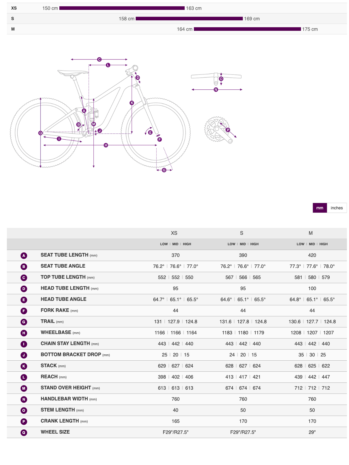 - Frame sizes XS and S are solely designed for a MX configuration – 29-inch wheel up front and 27.5-inch wheel in the rear.