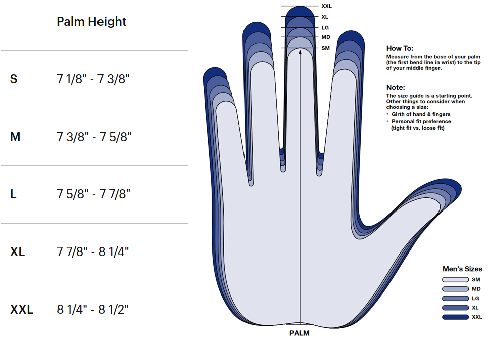 - Silicone printed palm and finger graphics improve palm and lever traction