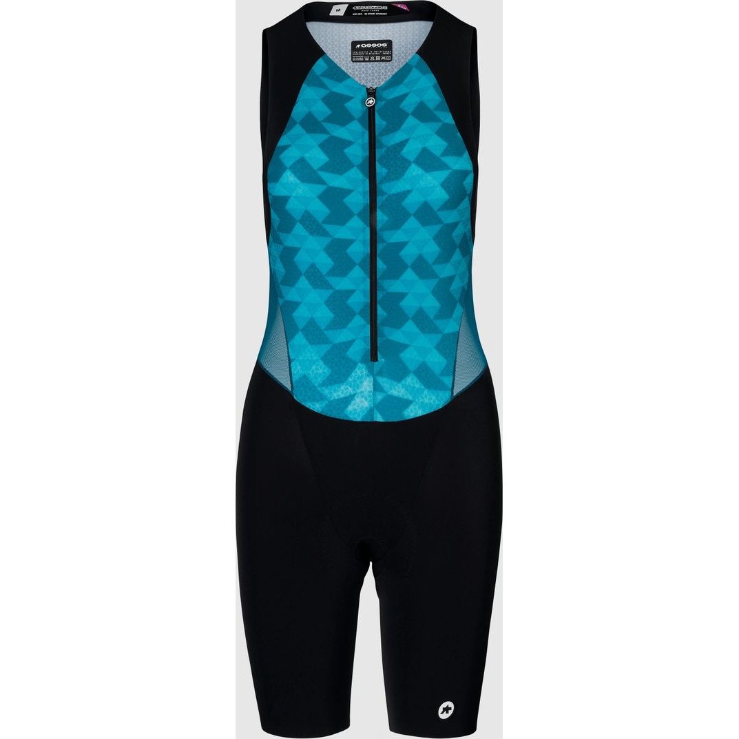 A female-specific sleeveless suit that brings ASSOS road expertise to multisport racing, specifically engineered for freedom of movement, second-skin speed, and full-body support.