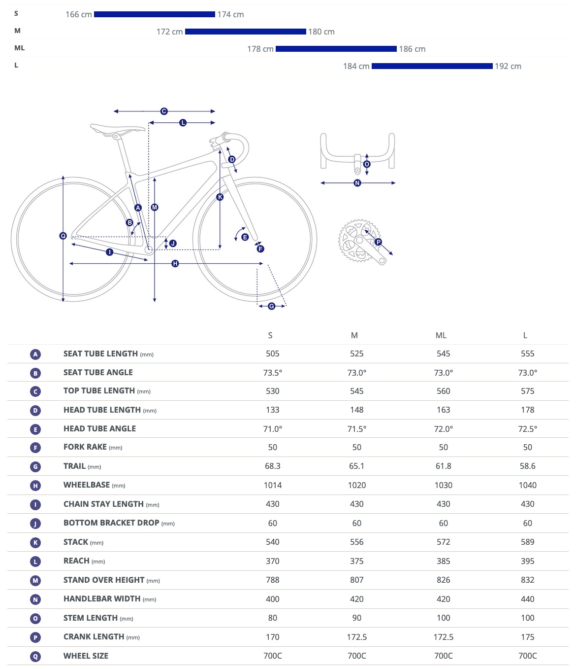 - Handlebar: Giant Contact SL S:40cm, M:42cm, M/L:42cm, L:44cm