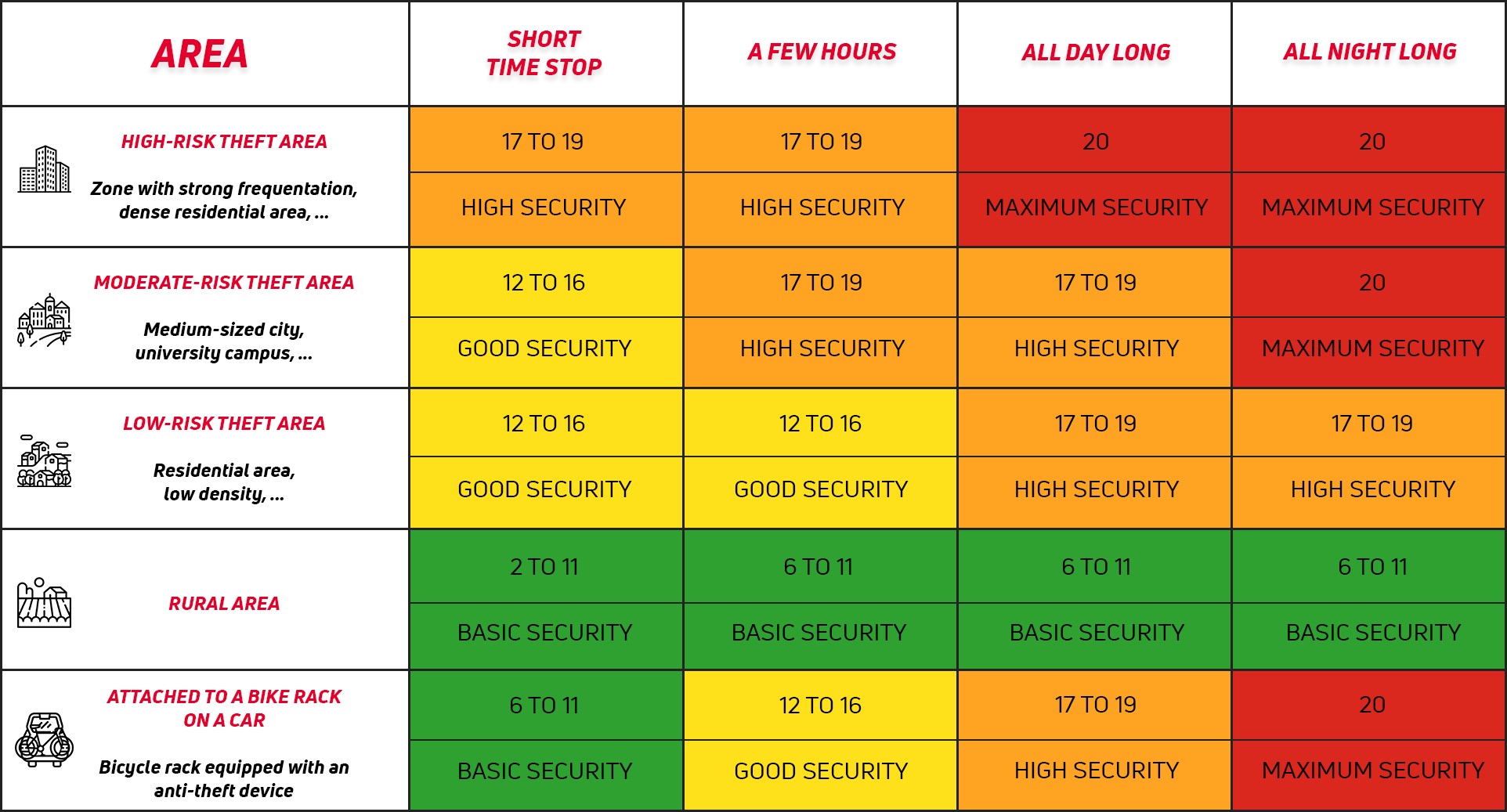 - Short-term parking in an area with a moderate risk of theft (medium-sized cities, university campus, etc.)