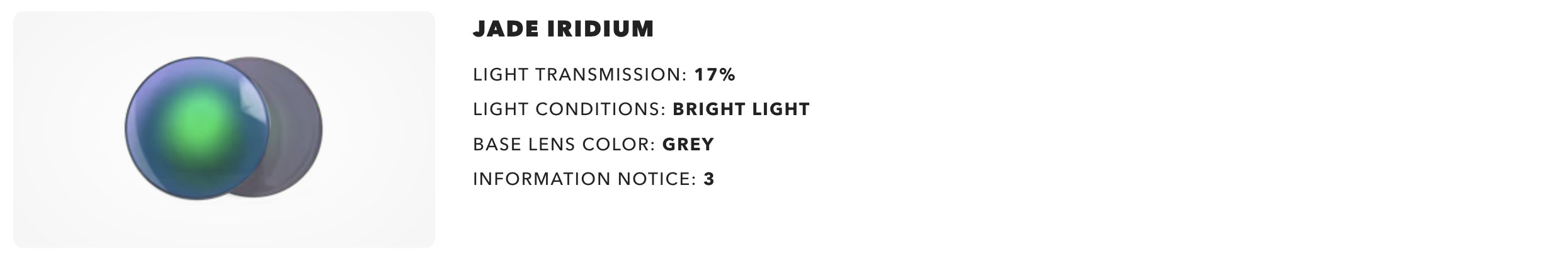 - Glare reduction and tuned light transmission of Iridium™ lens coating