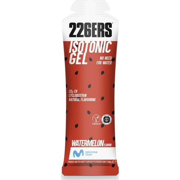 - Isotonic energy gel, watermelon flavour. Gel based on carbohydrates (22g), cyclodextrin and natural flavouring.