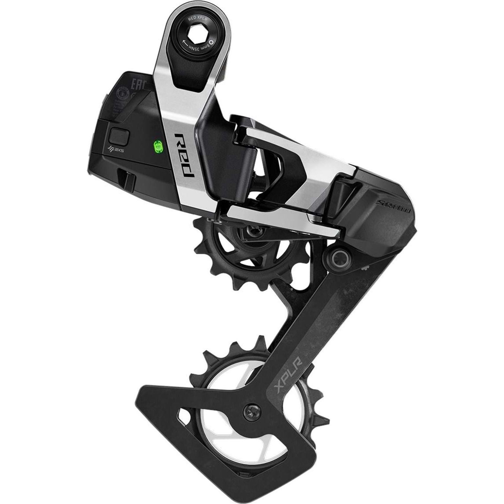 Gravel throws just about everything at your bike, and the RED XPLR AXS rear derailleur will happily take it all. Bring on the sticks, stones, and airport baggage abuse because the Full Mount derailleur design fits onto frames with the hangerless interface to make for the most robust and reliable gravel drivetrain possible. No adjustment screws mean setup is simpler than ever. And a surprise stick is no match for the Magic Wheel, as the debris-resistant lower pulley keeps the chain moving at all times. Purpose built for gravel, this 1x specific unit prioritizes shift precision and chain management no matter the terrain or conditions.