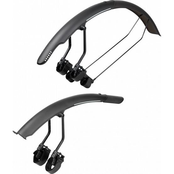 The perfect quick-mount, dual color rear fender that attaches to road bike frames with hook and loop straps easily and securely. Adjustable front struts provide a closer fit to the tyre and excellent mud / spray protection. For the rear, a unique two-piece, dual tone design provides short or longer fender usage options for a precise fit with your bike. A highly polished underside helps prevent dirt buildup and aids in cleaning. Included 3M reflective decals provide safety at night.