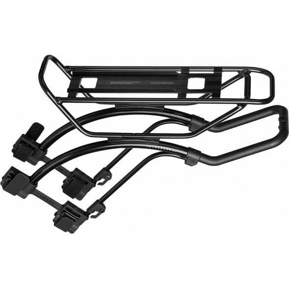 The perfect quick-mount rear rack system attaches to MTB full suspension seatstays or rigid bikes without rack eyelets. Features an innovative top plate which can be adjusted on a convex track, to keep it level to the ground, independent of seat stay angle. Integrated QuickTrack™ system allows Topeak TrunkBags to slide and lock into place and release with a the push of a button. Innovative hook and loop strap mounting system cinches down tight to keep the load stable and allow mounting on a wide range of bikes. Also compatible with RackTime® Snapit system bags.