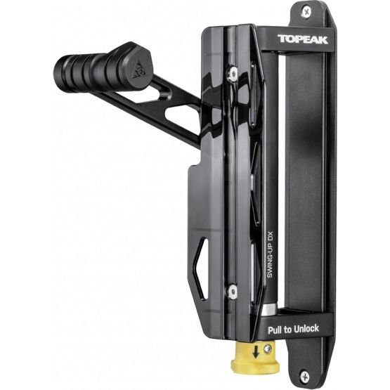 All of the features of the Swing-Up bike holder but with the added ability to lock the mount into a specific position. This addition is useful when mounting multiple Swing-Up DX bike holders next to each other.