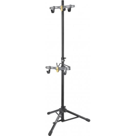 This multi-bike storage system is solid enough to double as a portable workstand using the lower mounting bracket. Constructed from aluminium tubing, the centre pillar extends to almost 7 feet while the tripod base provides a stable support. Stores up to 4 bikes (two brackets included)