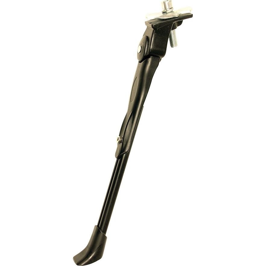 An easy to install bike kickstand with a larger foot for better stability.