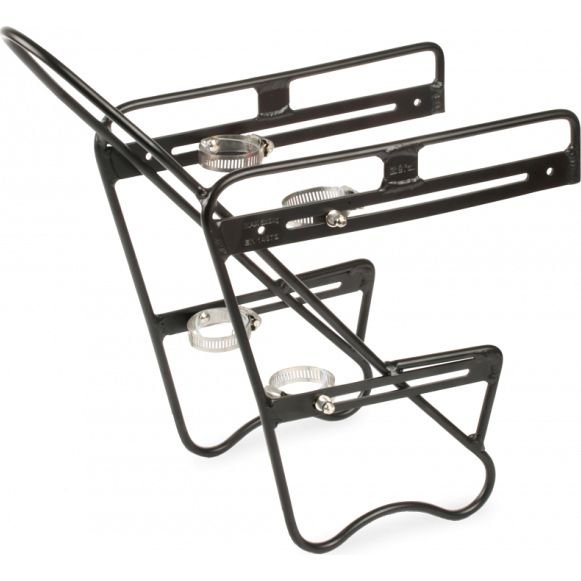 The Raider Front is a front rack that can carry two side panniers. It is light, weighing only 750g, and can carry a maximum load of 18kg (9kg on each side) of the front wheel. Suitable for bikes with 26" to 29" wheels, this rack is compatible with V-brakes or disc brakes and can be mounted on rigid or telescopic forks.