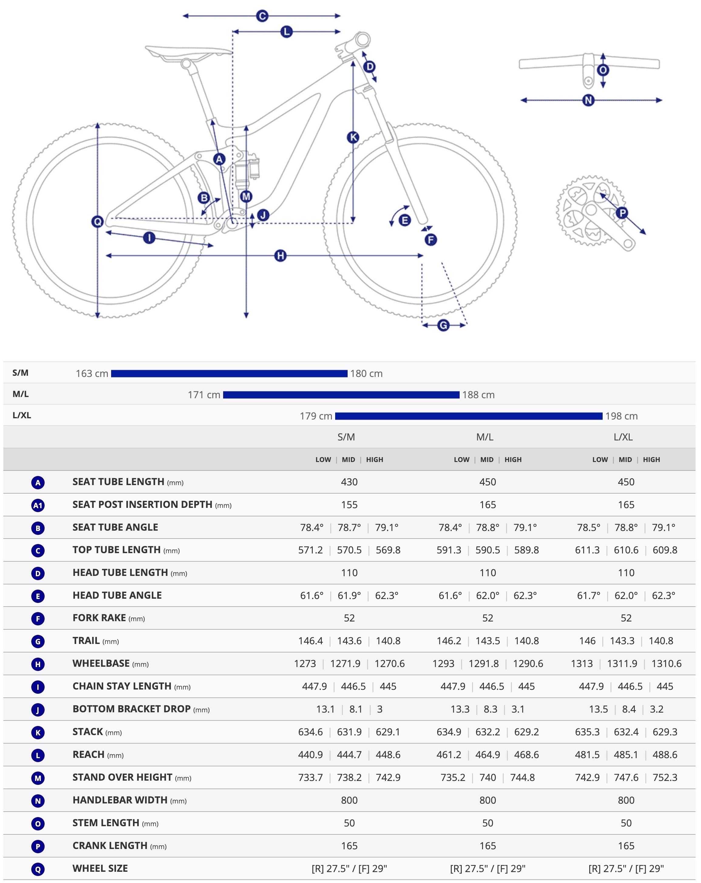 - Frame: Advanced-grade composite front and rear triangles, 200mm Maestro suspension, flip chip - headset, flip chip - dropout DH, flip chip - Maestro 3, 12x157mm thru-axle, 27.5 or 29-inch rear wheel compatible