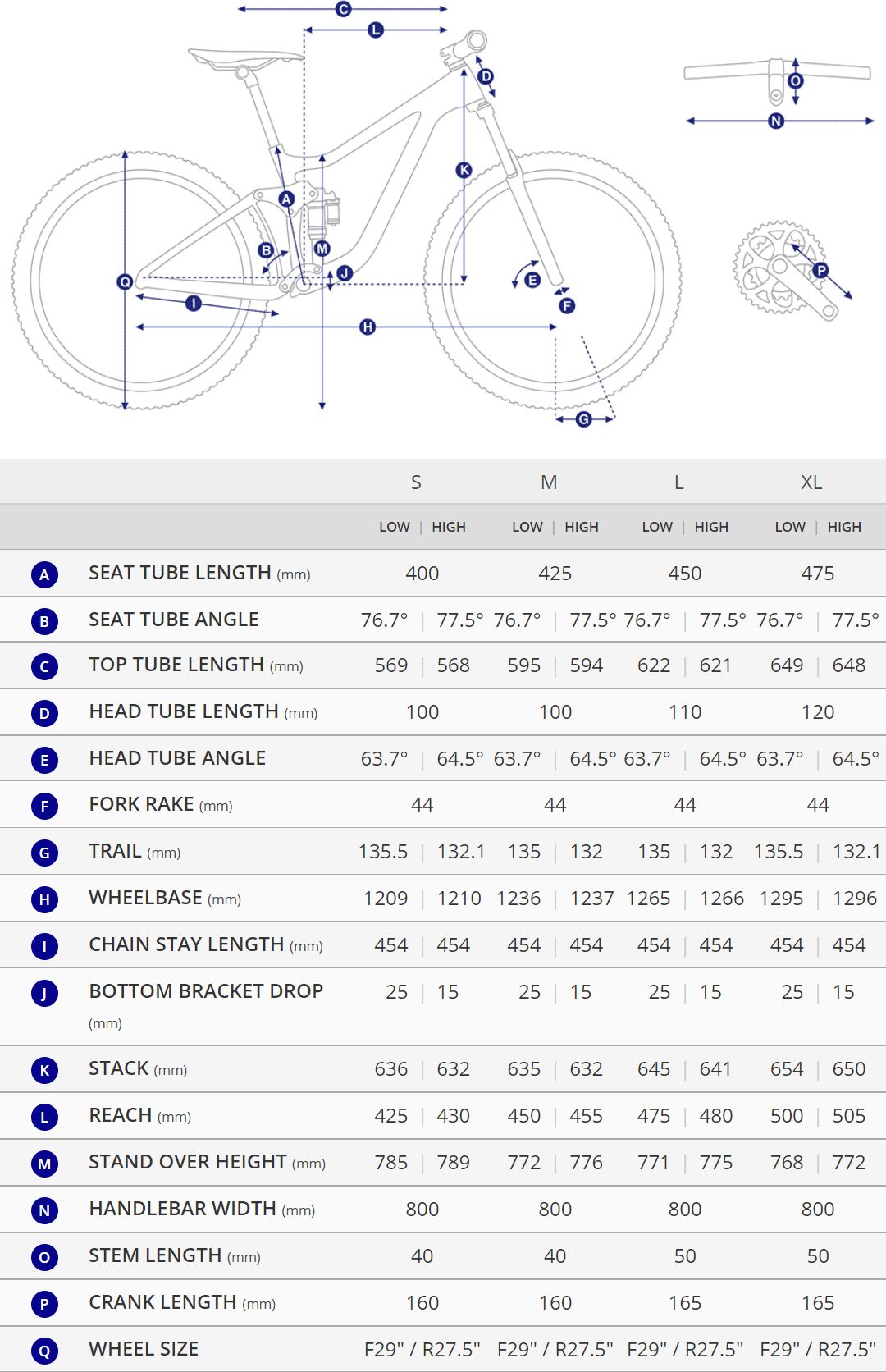A 29-inch front wheel and 27.5-inch rear wheel work together to offer superior handling and agility on technical terrain. The updated frameset features new geometry with a shorter rear end and longer reach. New control units include RideControl Go, which is integrated into the top tube, and RideControl Ergo 3, attached to the handlebar near the grip. A new flip chip feature lets you adjust frame geometry for riding style and terrain.