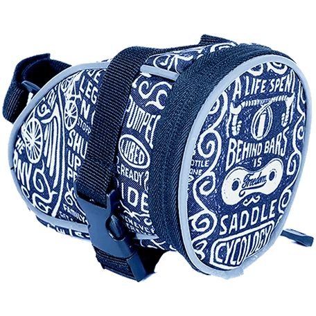 Attaching easily under your saddle with Velcro straps and adjustable buckles, it allows you to carry your spare tools, tubes, tyre levers, snacks, cash, keys, a mini pump, and anything else with confidence. For added safety and visibility it also features reflective piping on all seams and an original stylish Cycology artwork design.