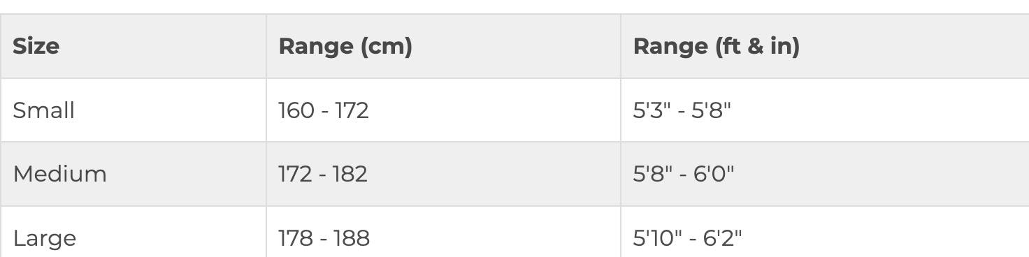 BIKE SIZE CHART