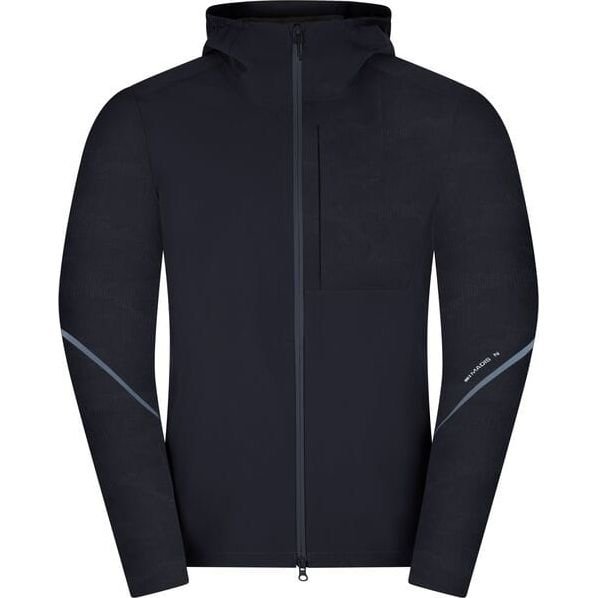 Waterproof gravel and trail cycling jacket with hood, built to keep you dry in changeable weather. Packable with a relaxed fit, features a highly reflective finish only visible under light