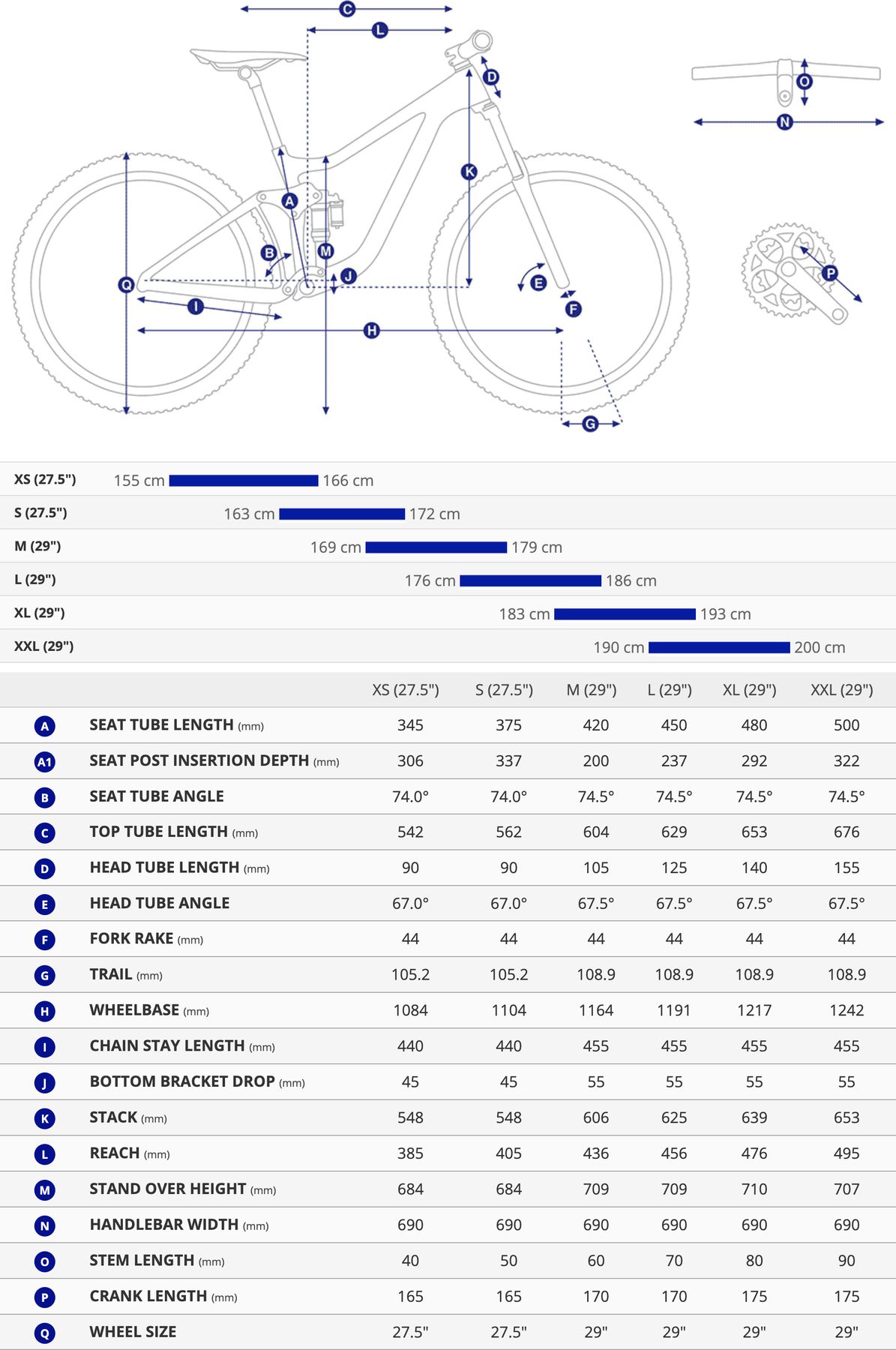 - Handlebar: Giant Connect Trail, 31.8mm XS&S: 690mm (27.5) M-XXL: 780mm (29)