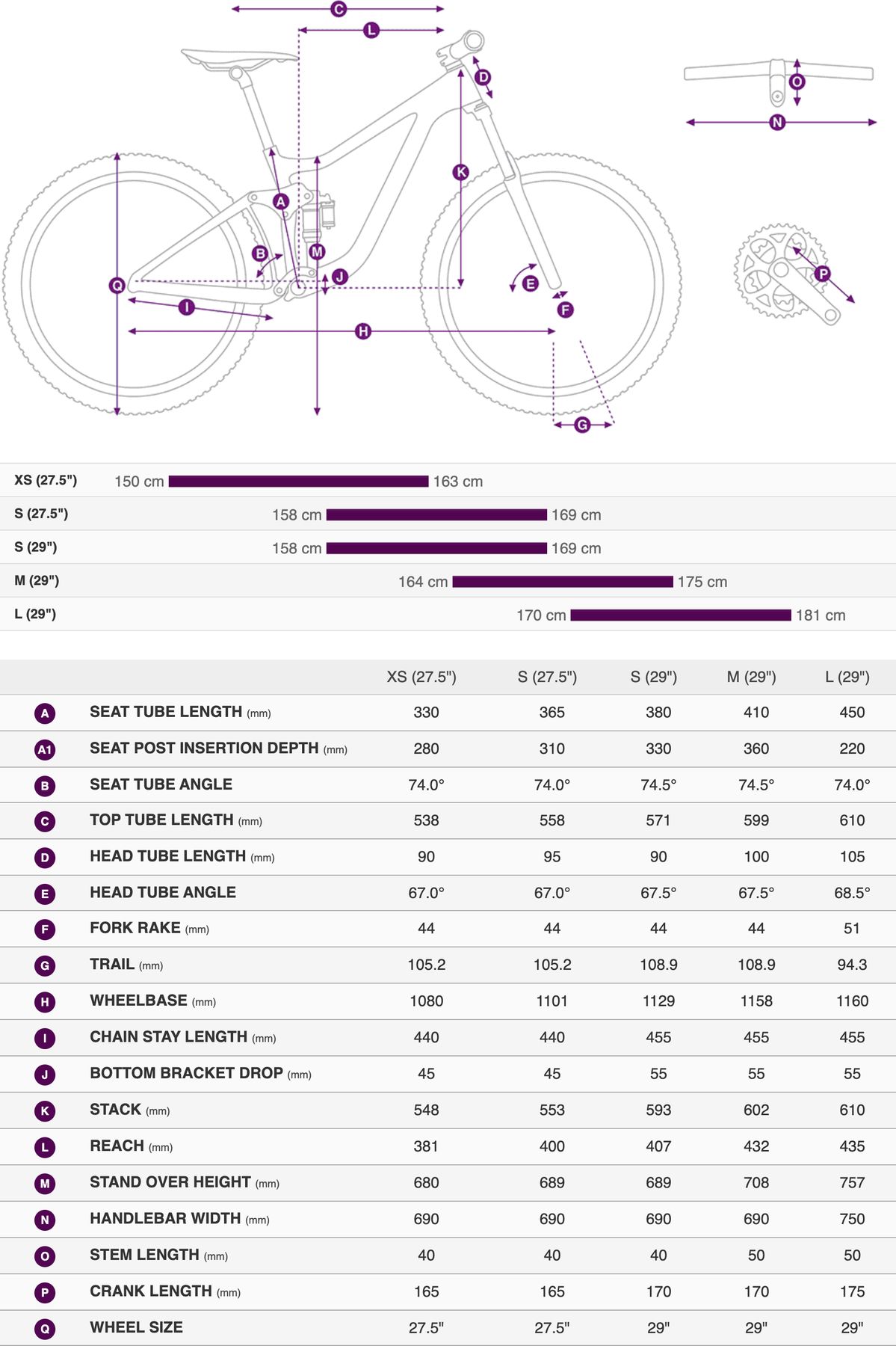 - Off-Road Control: The new geometry is optimized for confident trail riding, with two wheel size options (27.5- or 29-inch) based on frame size. It’s also designed to match front suspension travel with either an 80mm or 100mm fork. All models have clearance for high-volume tires (up to 2.4 inches) for traction and grip on technical terrain.