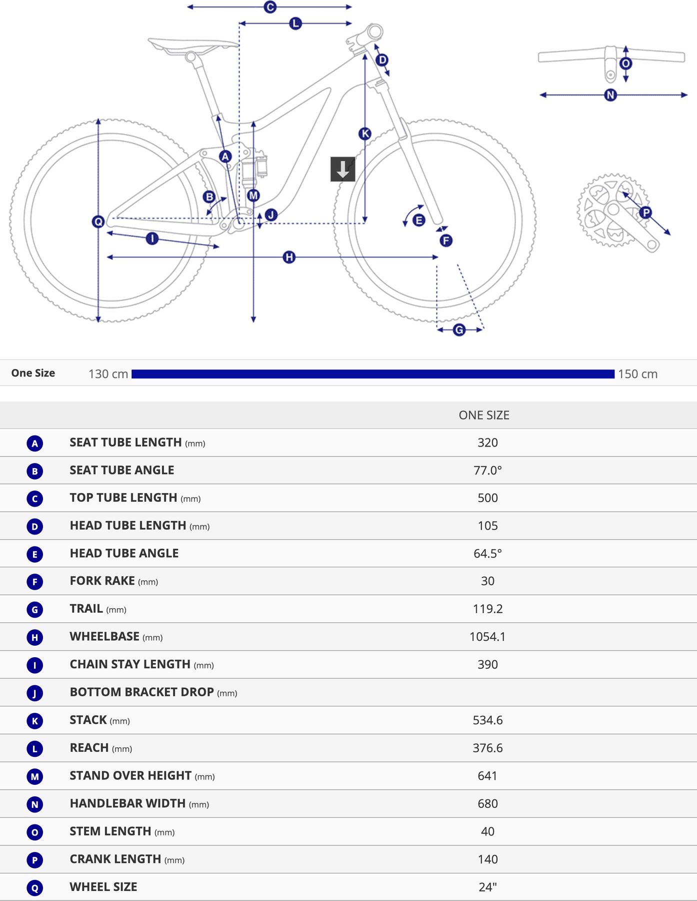 - Fork: Crest TR Elite Lite, FloTune Lite Damper, 140mm