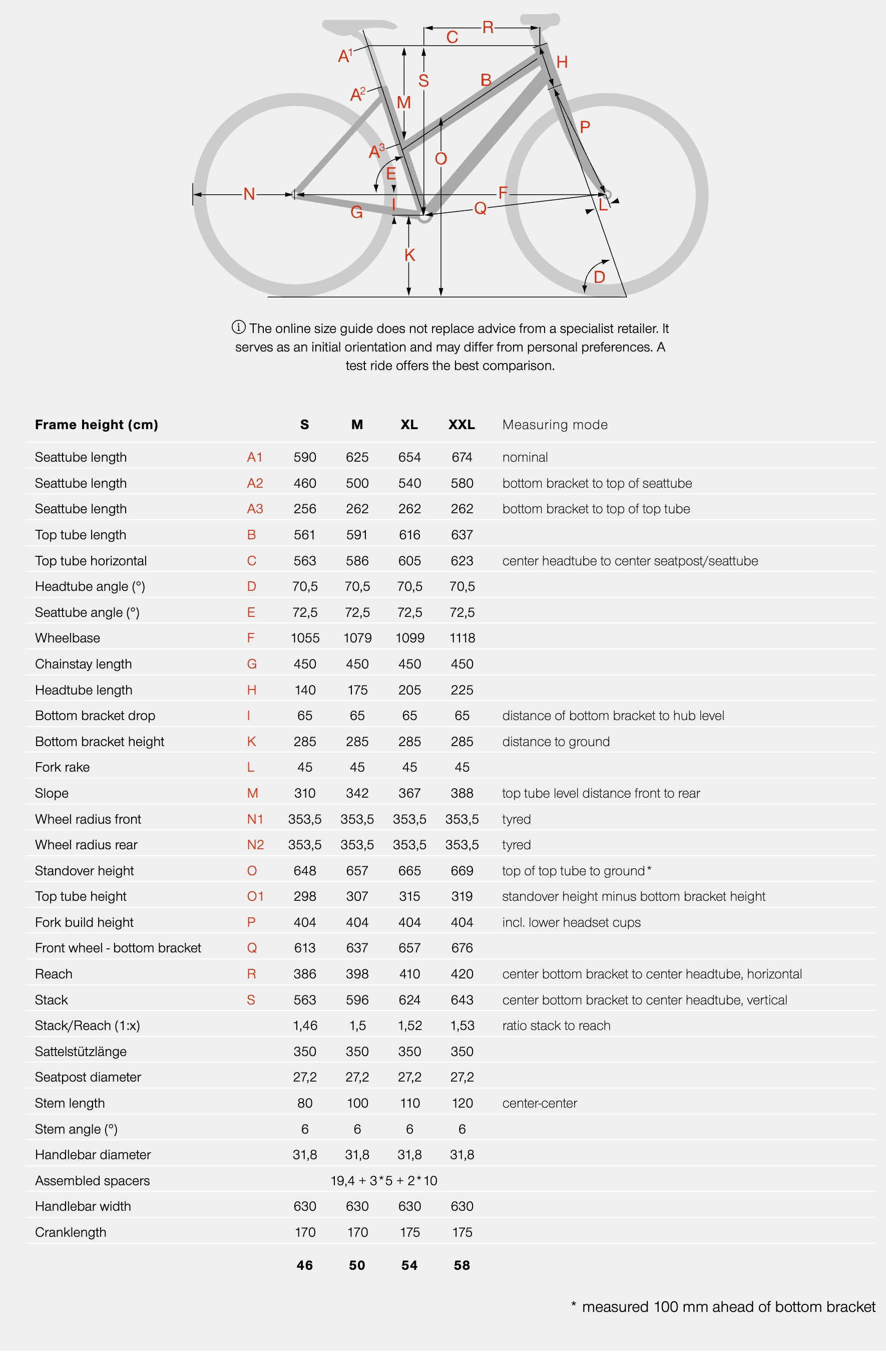 BIKE SIZE CHART