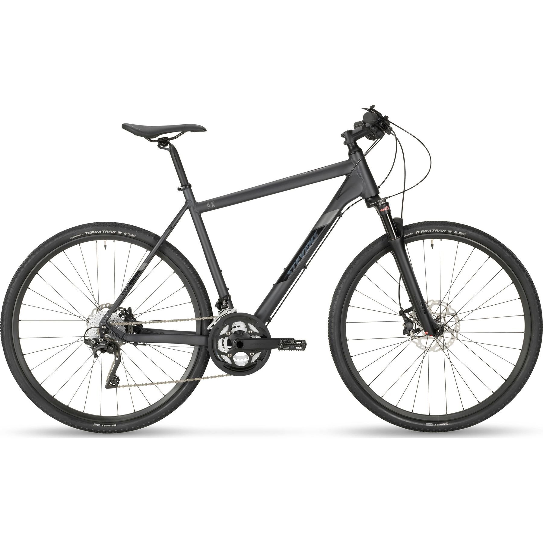 Shimano Deore XT – first choice for carefree, long term use. Geometry and concept by STEVENS deliver unmatched handling. The 8X puts everything together that belongs together. Reason and passion, temper and long life, road and dirt. And did we mention elegance?