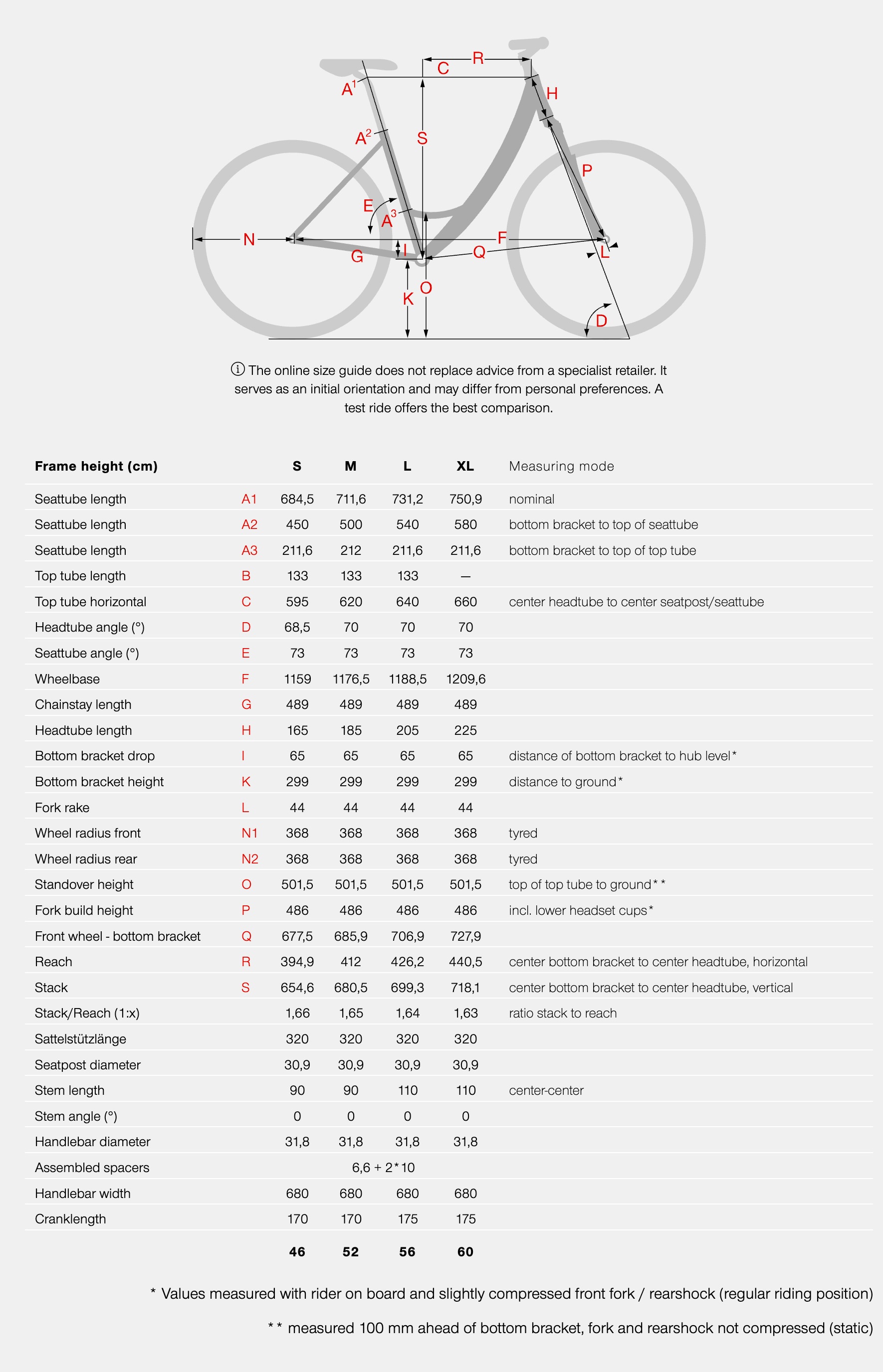 BIKE SIZE CHART