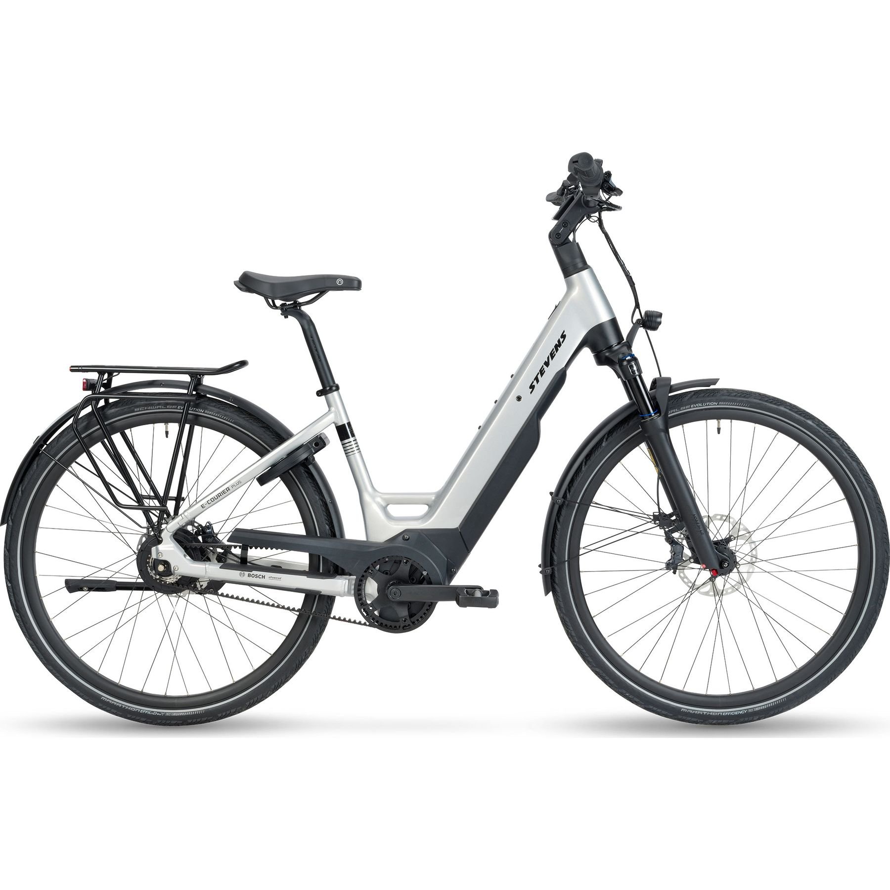 The E-Courier Plus is up to even the biggest challenges. Its innovative frame houses the powerful 85 Nm Bosch Performance Line CX drive unit for superior forward drive even at maximum load. At the same time, the new Bosch PowerPack with its gigantic 800 Wh capacity ensures unimagined ranges. The premium belt drive with continuously variable Enviolo rear hub shifting and low-maintenance Gates carbon belt ensures worry-free progress. And as if that were not enough, the "Plus" e-bike has been approved for a permissible total weight of 180 kilograms and trailer operation. You can't get more Plus than that...