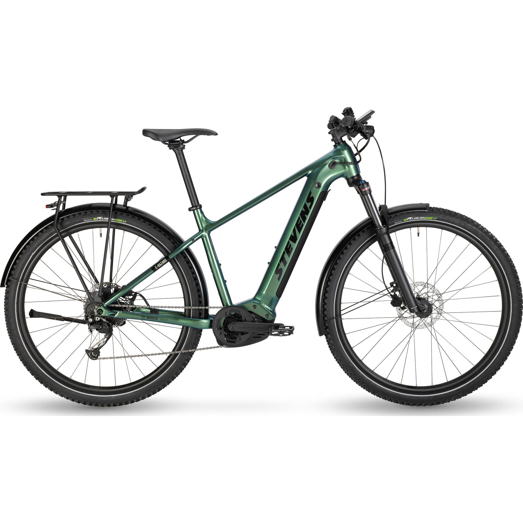 This crossover E-bike has it all. The lightweight, stable aluminium frame of the E-Hazard not only houses the powerful Bosch G4 Performance Line CX drive with 85 Nm torque, but also the reliable PowerTube 500 Wh battery for plenty of range. The E-hardtail crossover also comes with a comfortable suspension fork, harmonious everyday features and plenty of riding fun for all those who want to try their hand off the beaten track.