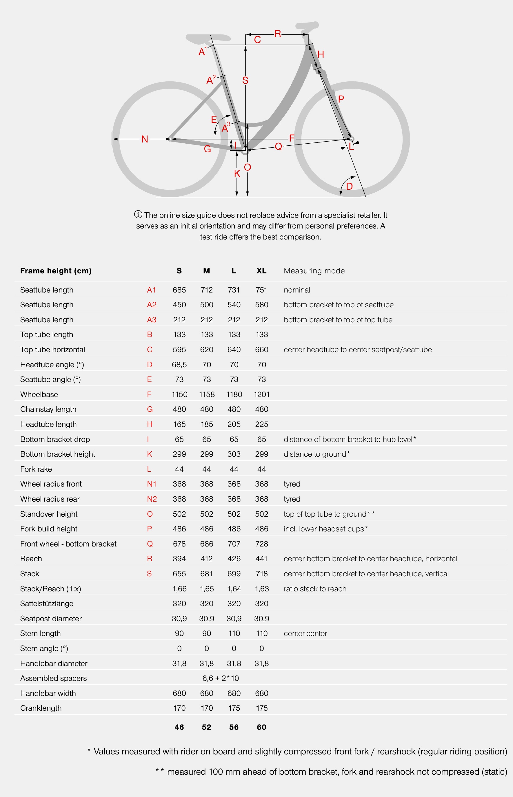 BIKE SIZE CHART