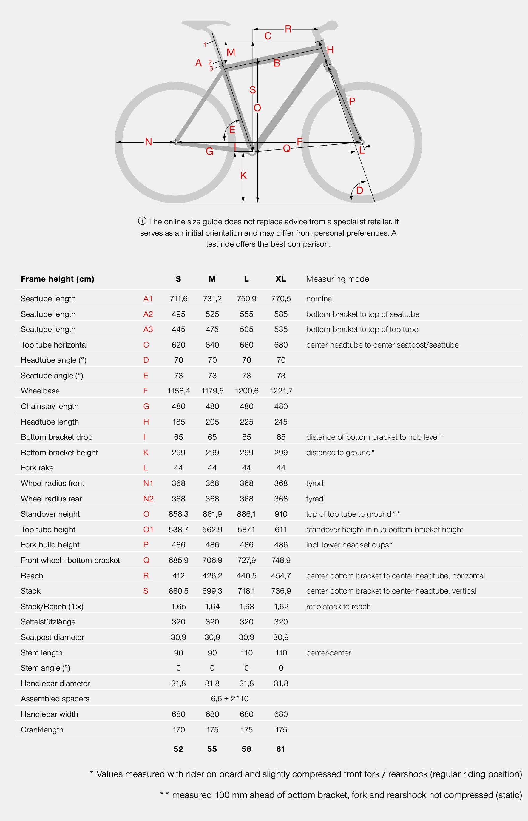 BIKE SIZE CHART