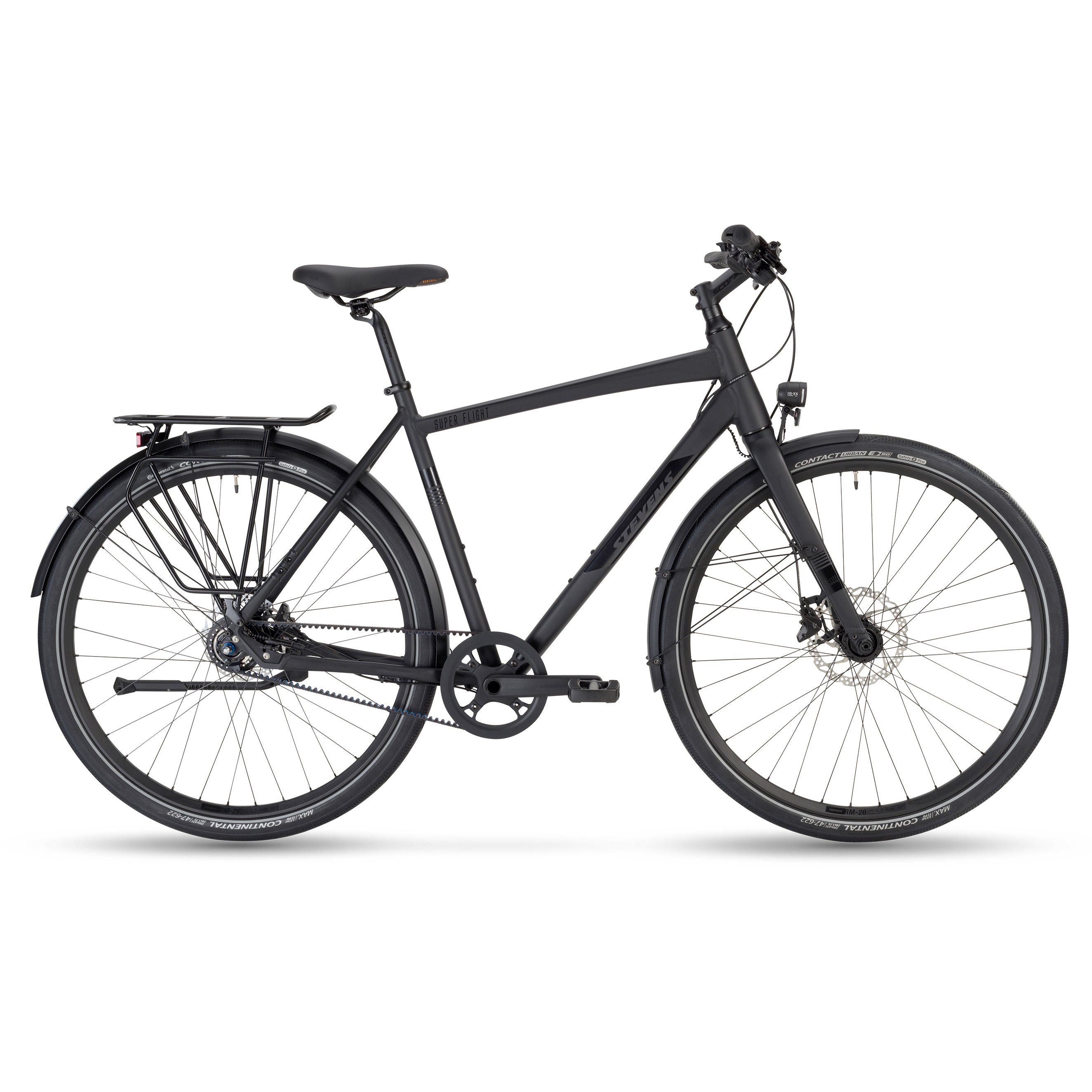 The high-flyer among the STEVENS city bikes not only impresses with its extremely elegant appearance – from the S-Lite aluminium fork to the hydraulic Shimano disc brakes and the ultra-slim LED rear light integrated into the luggage rack. Its Continental Contact Urban tyres, 11-speed hub gears with carbon toothed belt and a weight of just 14.4 kg allow the Super Flight to whizz effortlessly through the city and across the countryside.