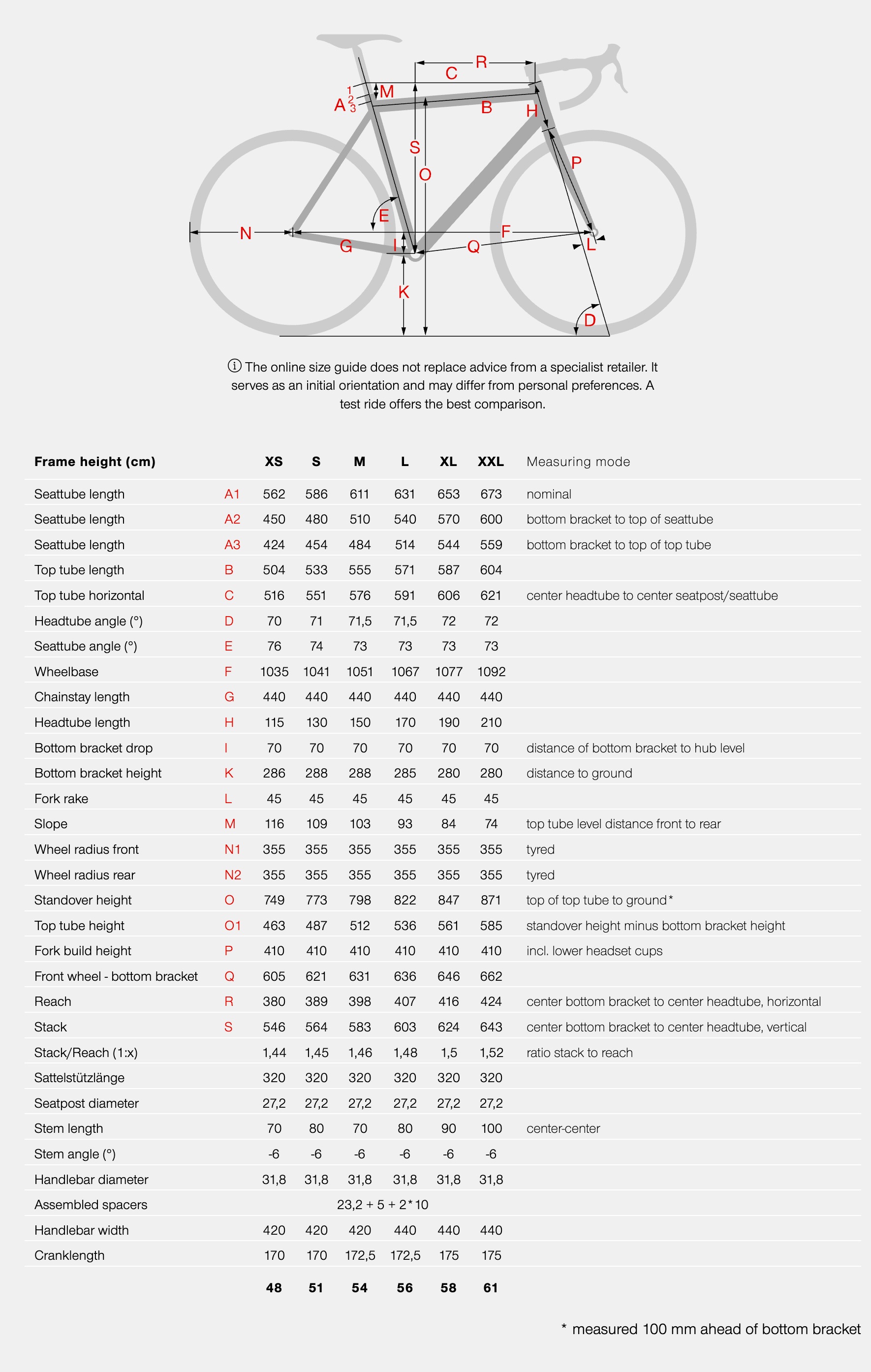 BIKE SIZE CHART