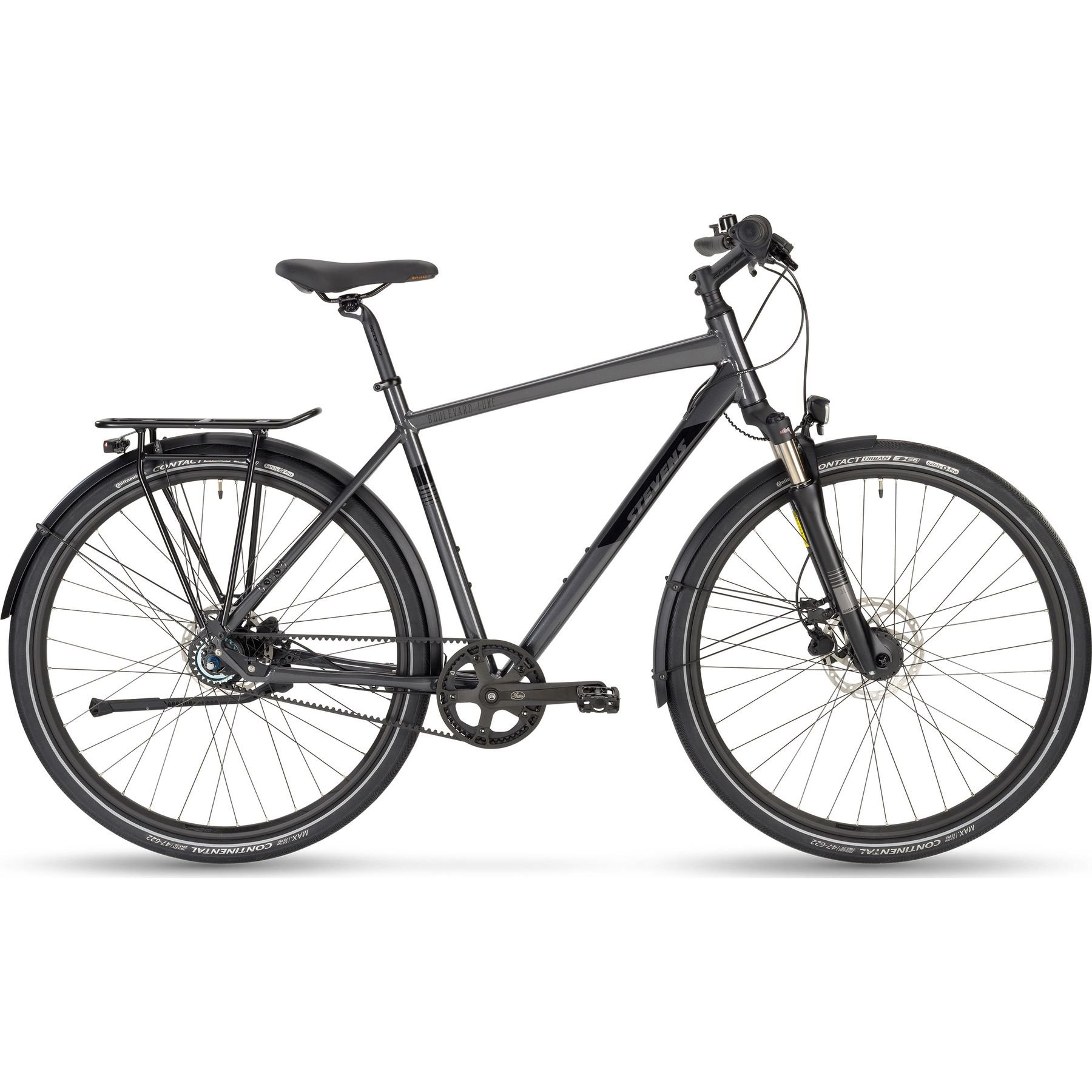 - Comfortable city and touring bike w/ maintenance-friendly belt drive and disc brakes