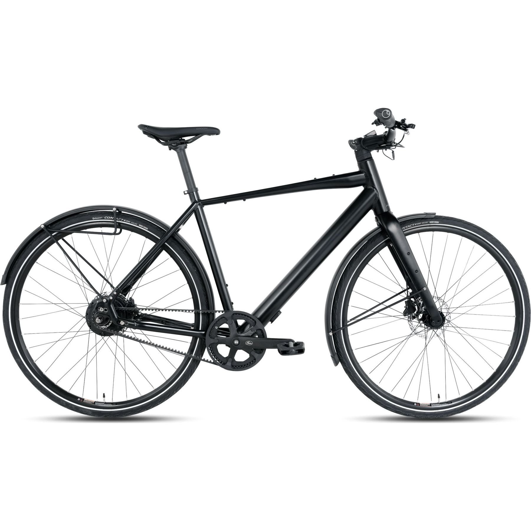 - The front and rear lights are neatly hidden in the handlebars and seatpost. The solid aluminium mudguard protects you from splashing dirt and has an integrated carrier on which you can clip panniers. Brake with the powerful and reliable Shimano hydraulic disc brakes.?